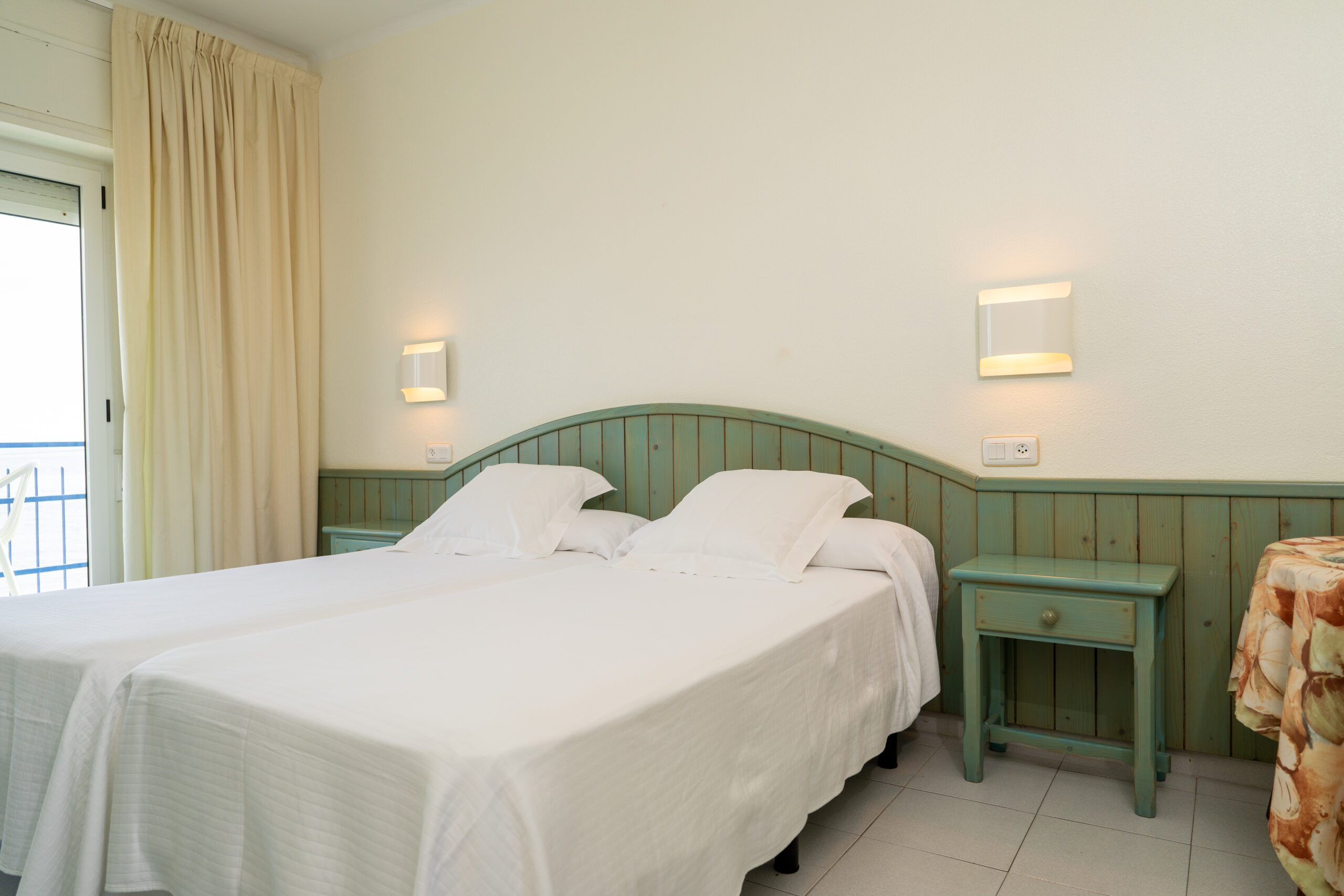Vi skal bo på det sjarmerende, familiedrevne Hotel Juanito Platja, med bare 30 rom som vi har reservert eksklusivt for oss selv – vårt helt eget hotell der alle rommene har havutsikt!